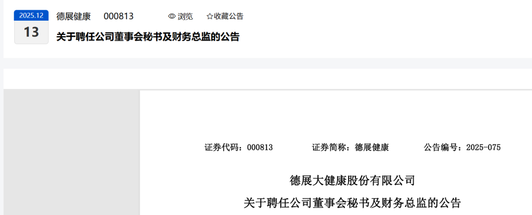 为适应公司发展战略需要,健全公司治理结构,保证公司董事会的日常运作及公司信息披露、财务等工作的顺利开展,德展大健康股份有限公司(以下简称 “公司”“德展健康”)于 2025 年 12 月 12 日召开第九届董事会第三次会议,会议审议通过了《关于聘任高涛先生为公司董事会秘书的议案》《关于聘任吴玲女士为公司财务总监的议案》。