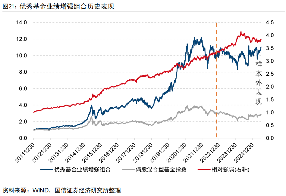 我们以业绩分层视角下的优选基金持仓为选股空间和对标基准,采用组合优化的方法控制组合与优选基金持仓在个股偏离、行业偏离及风格上的偏离,构建优秀基金业绩增强组合,历史来看该组合表现优异,能够稳定战胜主动股基中位数。