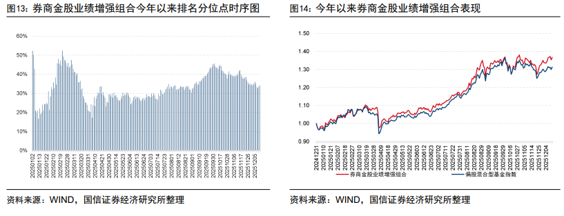 本年(2025.1.2-2025.12.12),券商金股业绩增强组合绝对收益36.74%,相对偏股混合型基金指数超额收益5.40%。今年以来,券商金股业绩增强组合在主动股基中排名34.33%分位点(1191/3469)。