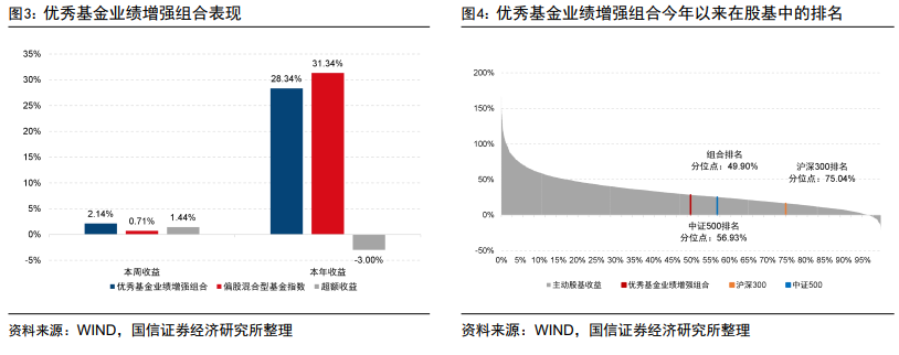 优秀基金业绩增强组合:本周超额收益1.44%,本年超额收益-3.00%。
