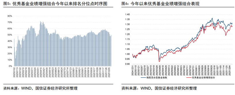 本周(2025.12.8-2025.12.12),优秀基金业绩增强组合绝对收益2.14%,相对偏股混合型基金指数超额收益1.44%。