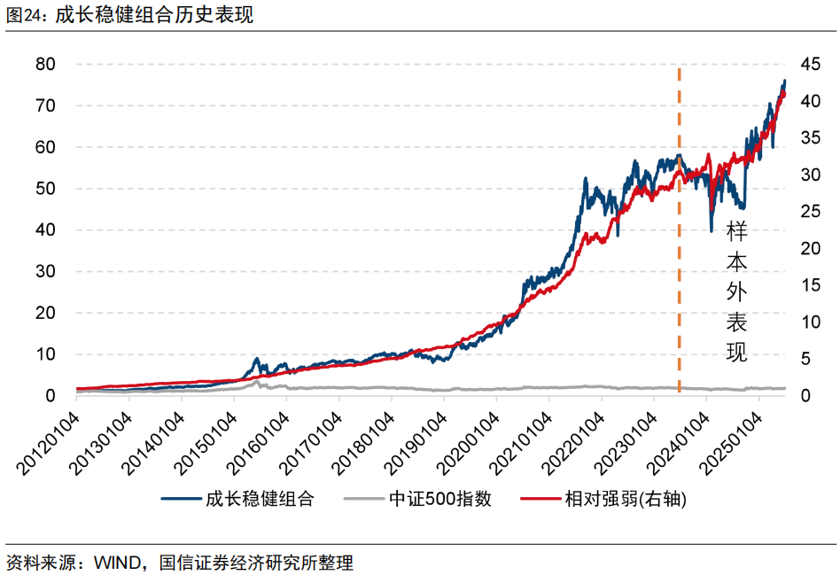 国信金工成长稳健组合,旨在对成长股股票池超额收益释放的黄金期进行提前布局,以期高效地获取成长股超额收益的黄金期收益,组合的详细构建方式可参见我们于2023年6月7日发布的专题报告《超额图谱视角下的成长股投资策略》。同样的,我们以偏股混合型基金指数作为组合对标基准,组合仓位90%。