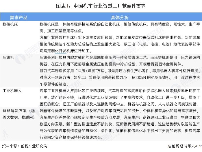 本文核心数据:中国汽车行业智慧工厂软硬件需求; 汽车行业智慧工厂解决方案; 汽车制造中智慧工厂基本架构等