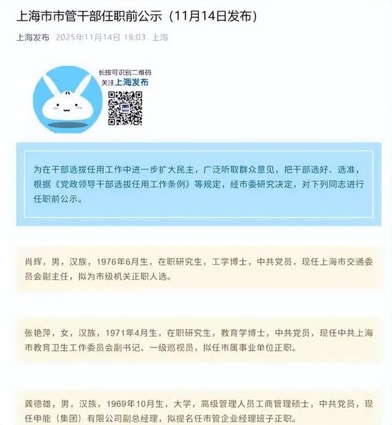 不过再细看,11月中旬上海市组织部已公示其拟任“市管企业经理班子正职”,说明早有安排。