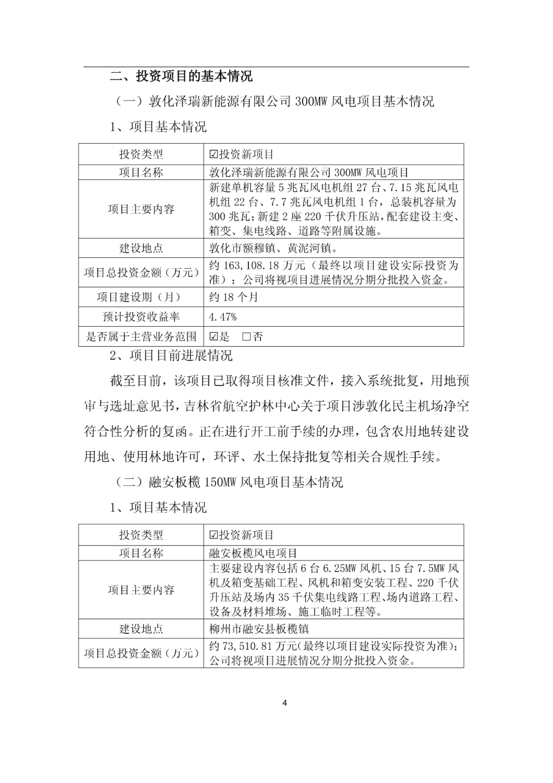 上述拟投建风电项目装机容量共计450MW,估算总投资共计约23.66亿元;公司将视项目进展情况分期分批投入资金。