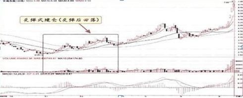 3、反弹式建仓:这是庄家利用投资者“高抛低吸”“抢反弹出货”“逢高减磅”的心理,来吃进筹码,从而快速完成建仓任务。