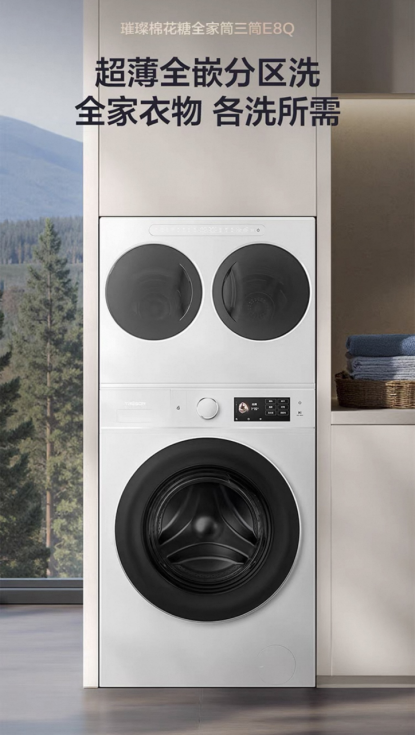 4.海信全家筒棉花糖E8Q三筒洗衣机(WH130E8Q+WV20G-H、WH130E8Q-1+WV20W):超薄全嵌+热泵柔烘