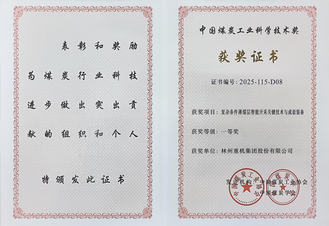 未来,林州重机将以此次获奖为新的起点,继续发挥技术引领作用,为煤炭工业的科技进步与转型升级贡献更多力量,共同开创行业高质量发展的新篇章!