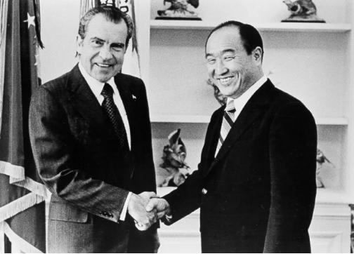 1974年,文鲜明与美国总统理查德·尼克松在白宫会面。