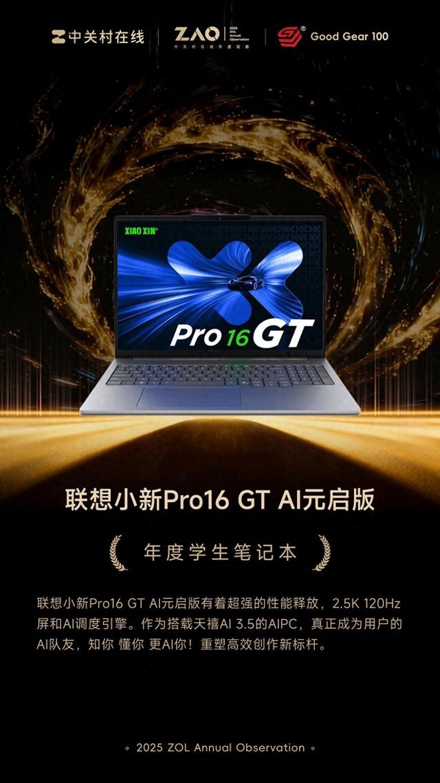 2025年度百大优秀科技产品:年度学生笔记本联想小新Pro16 GT AI元启版