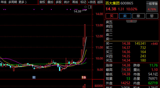 零售股继续走强,百大集团(600865)4连板,广百股份2连板,华联股份、红旗连锁、利群股份、欧亚集团、三江购物等跟涨。