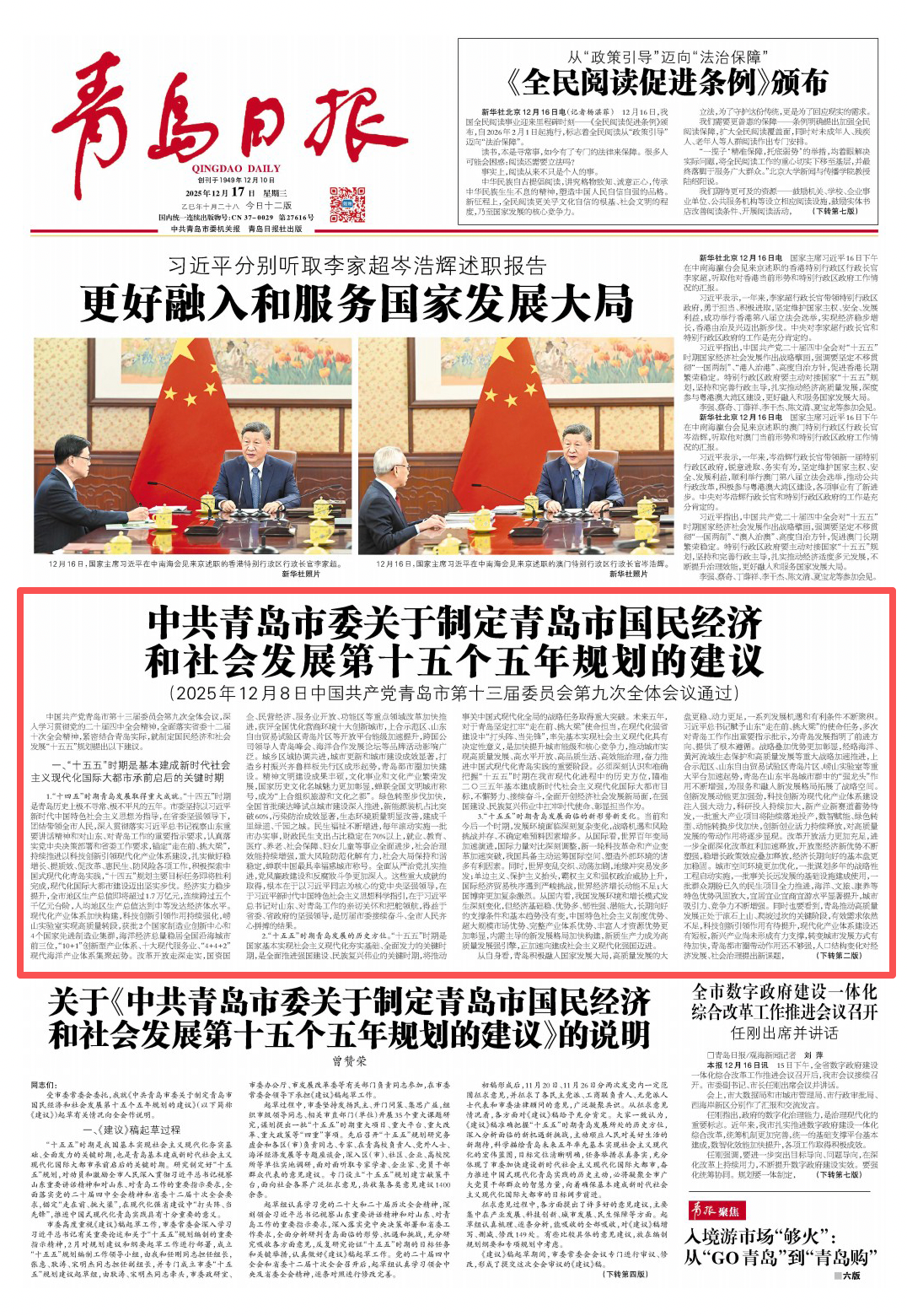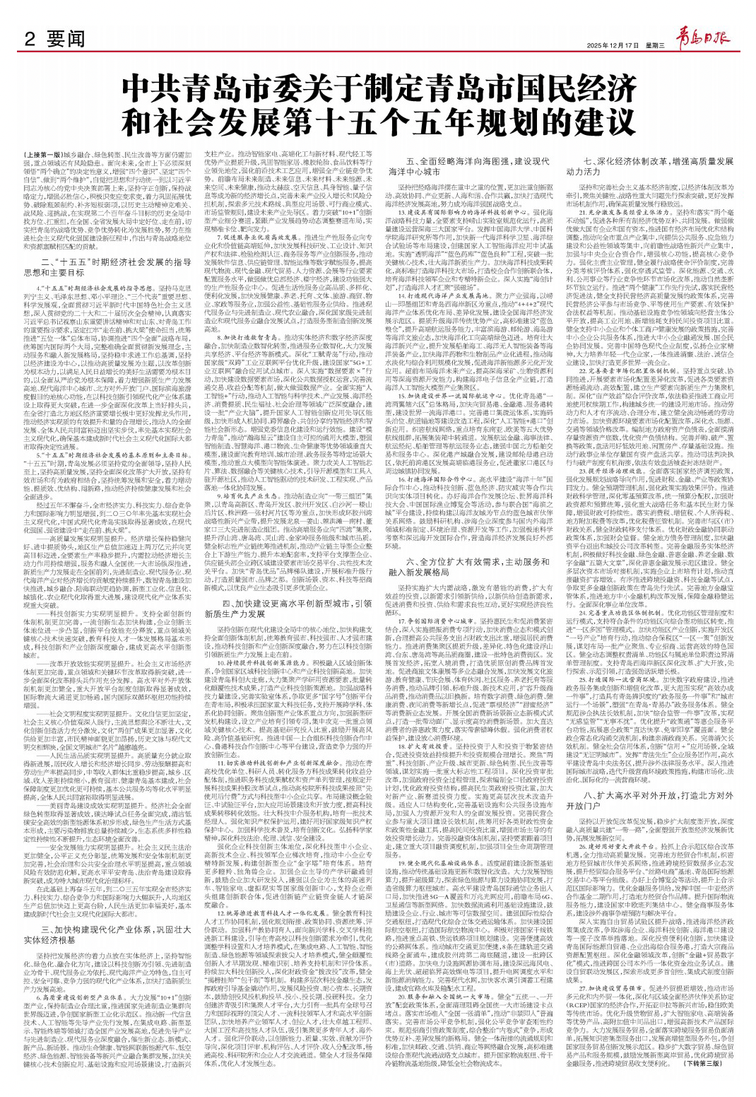 (2025年12月8日中国共产党青岛市第十三届委员会第九次全体会议通过)