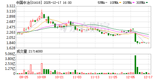 12月9日,中国中冶股价大跌。其中A股跌停,港股收跌21%。