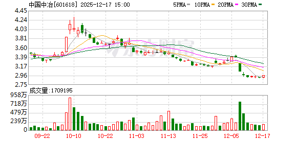 截至12月17日,中国中冶报2.96元/股,上涨1.72%,总市值超600亿元。