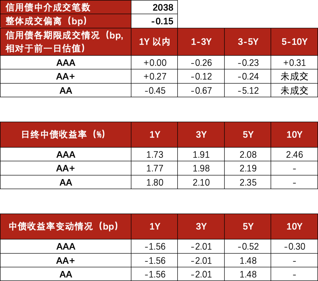 二级方面,信用债成交笔数稍有减少,成交2038笔,位于历史98%分位,平均低估值0.15bp成交。TKN占比达到过去一个月以来的峰值,低估值成交占比显著走高。1Y内信用债成交739笔,位于历史98%分位,成交笔数升至峰值,中位数高估值0.12bp左右成交,收益率中枢为1.83%。1-3Y信用债成交915笔,成交笔数同步抬升,位于历史99.6%分位,中位数低估值0.31bp左右成交,收益率中枢来到2.06%。3-5Y信用债成交289笔,成交笔数大幅回升,位于历史62%分位,中位数低估值0.44bp成交。5Y以上信用债成交77笔,位于历史65%分位,中位数高估值0.24bp成交。总体来看,中短端买盘情绪较中长端更强,下沉策略相对占优,信用利差有所缩窄,机构增配动作明确。