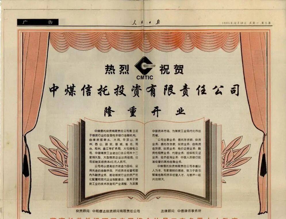 1995年12月18日,中诚信托(原中煤信托)正式开门营业,开启了属于中诚人的奋斗历程。2001年,公司成为全国首批获准重新登记的信托投资公司。2004年,公司增资扩股,股东增至13家并正式更名。2007年,公司名称变更为中诚信托有限责任公司,并成为首批换发金融许可证的信托公司。2008年,中国人民保险集团股份有限公司成为公司的第一大股东。经过2010年、2022年两轮增资,公司股东增至15家,注册资本金增至48.5亿元,不断夯实资本实力。