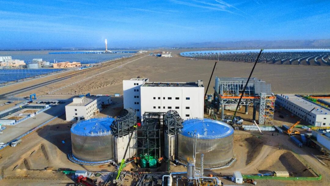 该项目是国家级大型风光电基地项目,采用“线性菲涅尔聚光+熔盐储热”技术。其中核心配套工程——储热岛系统2台高低温熔盐储罐,材质分别为347H不锈钢和耐高温碳钢,直径33.8米、高度15米,设计制造技术要求高、施工难度大。