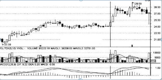 同理,上涨缩量,碰到这种情况,就应坚决买进,坐等获利,等股价上冲乏力,有巨量放出的时候再卖出。