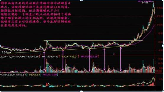 一般而言,一只股票在拉升前大多会有一个砸盘的动作,就比如人要跳起之前会微蹲下一样。因为之前庄家已经建仓结束,在拉升前的最后一次洗盘时成交量会比以前明显萎缩。如果投资者发现一只股票在底部温和放量、小幅拉升后,忽然收了一根明显缩量的阴线,则此时通常是该股最好的介入时机。