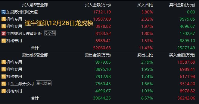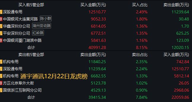 12月22日,中国银河证券大连黄河路买入通宇通讯9052万元,通宇通讯股价涨停。