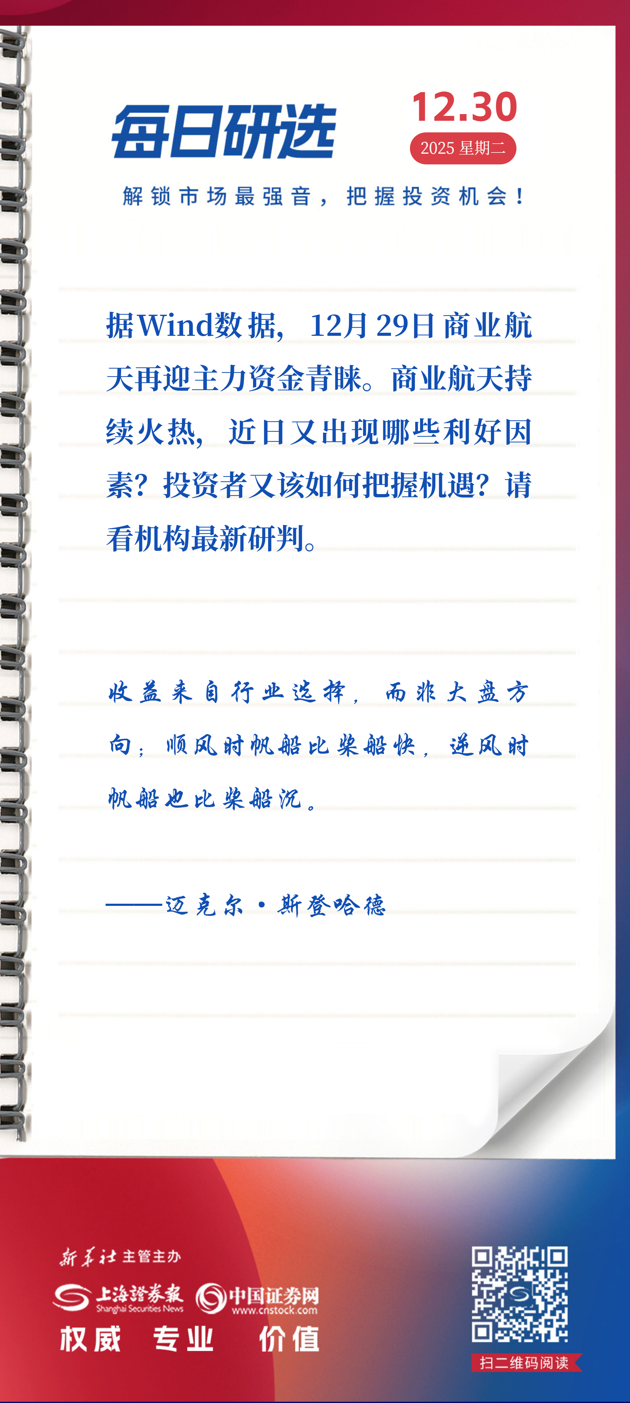 据Wind数据,12月29日商业航天再迎主力资金青睐。商业航天持续火热,近日又出现哪些利好因素?投资者又该如何把握机遇?请看机构最新研判。