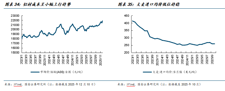 2)预计成本端仍有红利,但较2025年将有明显趋缓,主要系铝罐成本预计会有小幅提升,而大麦、玻璃等成本仍在低位相对平稳。因此,酒企主要通过引导需求端升级进而驱动产品结构优化,以及内部提质增效加码精细化来达到盈利水平持续改善的目标。在成本红利趋缓的背景下,也会强化前述行业价格竞争趋于理性的判断。