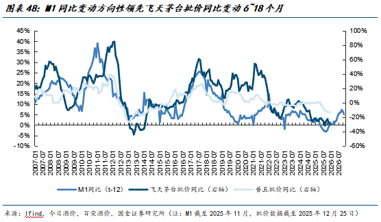 2)M1同比增速领先飞天茅台批价变动约6~18个月,流动性宽松一方面通过提升经济活跃度、带动企业和居民端消费;另一方面,通过资产升值财富效应间接推动白酒消费。