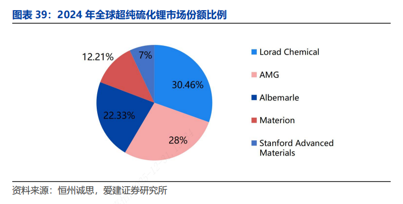 当前超纯硫化锂以海外厂家为主,国内厂家崛起。Loard Chemical市场份额约占全球的30%。国内赣锋锂业凭借硫化锂量产技术和百吨级产能,为全球先进的规模化供应商。