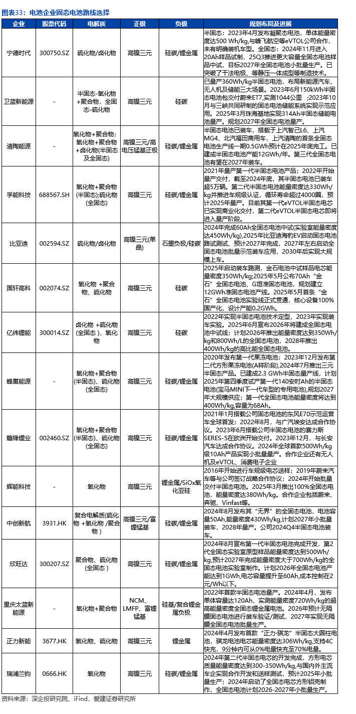 国内技术快速迭代,商业化进程加速。蔚来于2021年发布ET7车型,可选装卫蓝能源提供的固态电池,最高续航1000km。奇瑞汽车2025年展出采用原位聚合体系的固态电解质的“犀牛S”全固态电池模组。