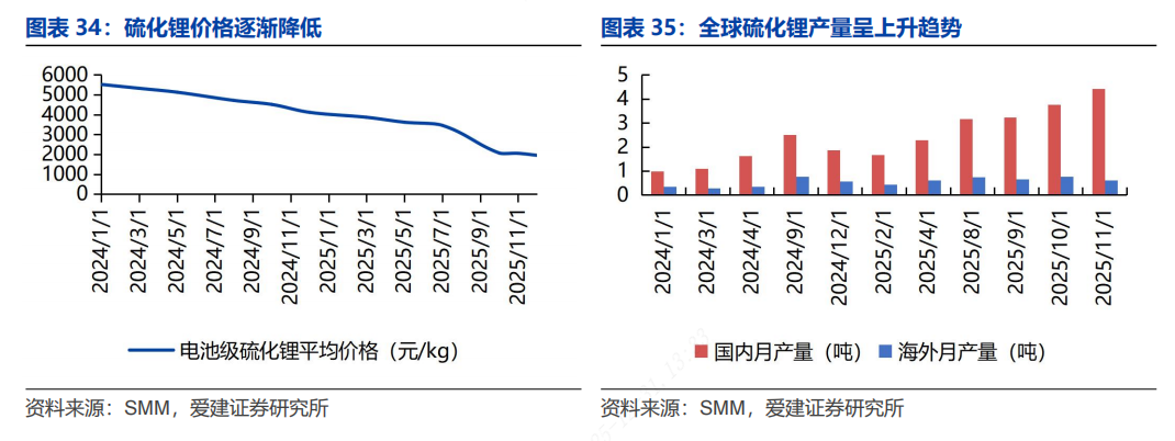 硫化锂产能呈现上升趋势。2024年1月硫化锂全球月产量为1.32吨,至2025年11月产量约5吨,提升三倍以上。
