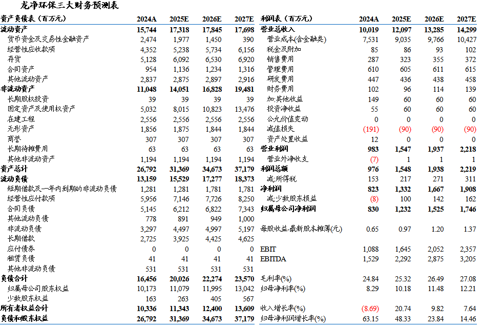 • 电力&非电共振,大气污染治理市场稳健释放。除了财政资金支持外,电力与非电持续释放的新建、改造、更新需求,驱动大气污染治理市场稳健释放。火电作为新型电力系统转型过程中的压舱石,新增装机仍有支撑,煤电往清洁降碳、高效调节、智能运行等方向发展,推动存量机组改造提升。非电行业推动减污降碳深度协同,钢铁、水泥、焦化等超低排放改造进行中。公司作为全球最大的大气环保装备研发制造商,将持续受益于市场释放。2025年前三季度公司新增环保设备工程合同76.26亿元(电力占61.51%,非电占38.49%),同比增长1.1%,第三季度新增环保设备工程合同22.56亿元,单季度同比增长12%。得益于新一轮煤电项目建设和现役机组的环保改造需求,公司持续巩固大气污染治理领域龙头地位。截至20250930,公司在手订单197亿,较20250630下降3亿,较2024年底增加10亿,在手订单充足,收入确认加速。
