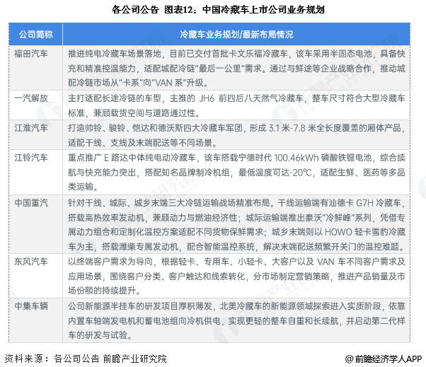 5、冷藏车行业企业业务规划对比