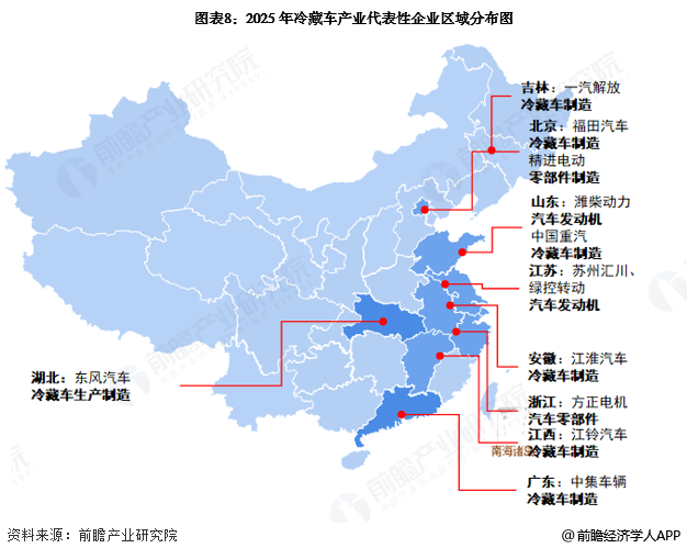 从代表性企业分布情况来看,我国冷藏车代表企业分布在广东、江苏、浙江、山东等东部沿海省份,总体来看企业集中于长三角区域。
