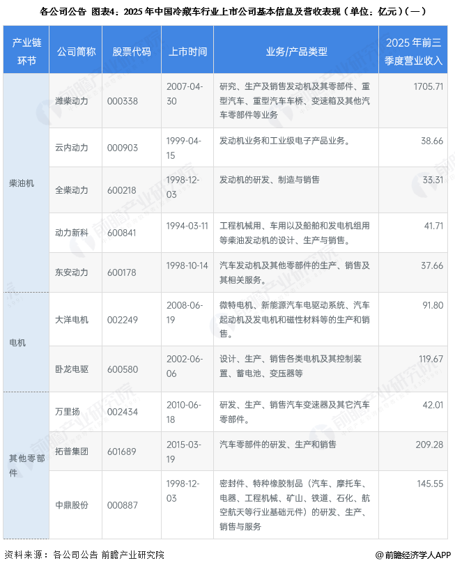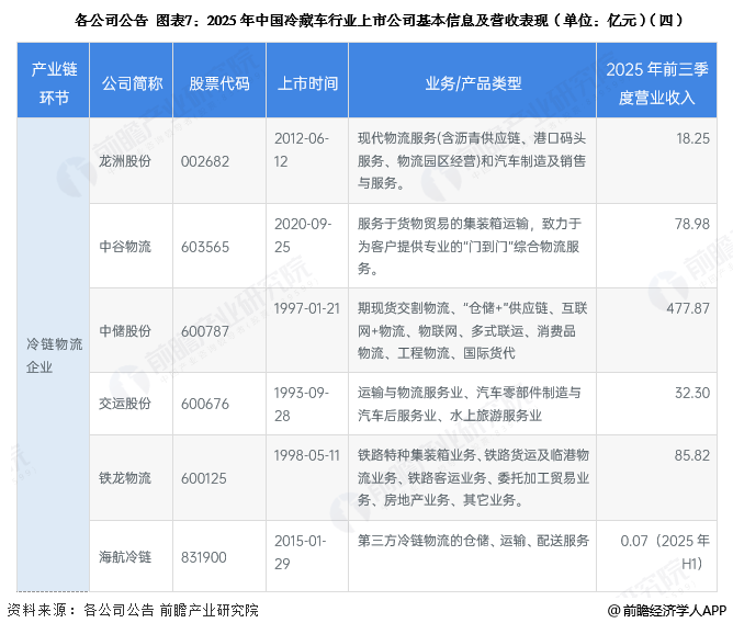 1、冷藏车行业上市公司汇总