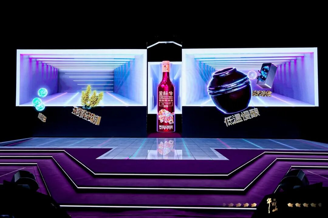 随后在震撼人心的视听科技演绎中,品牌精神象征“奔牛”踏破时空,化身于瓶身的钻石切割线条造型。借助裸眼3D、开合屏与竖屏全息等技术,金标牛轻口味白酒“破格而生”,惊艳亮相,标志着这一国民品牌正式开启年轻化、现代化焕新之旅。