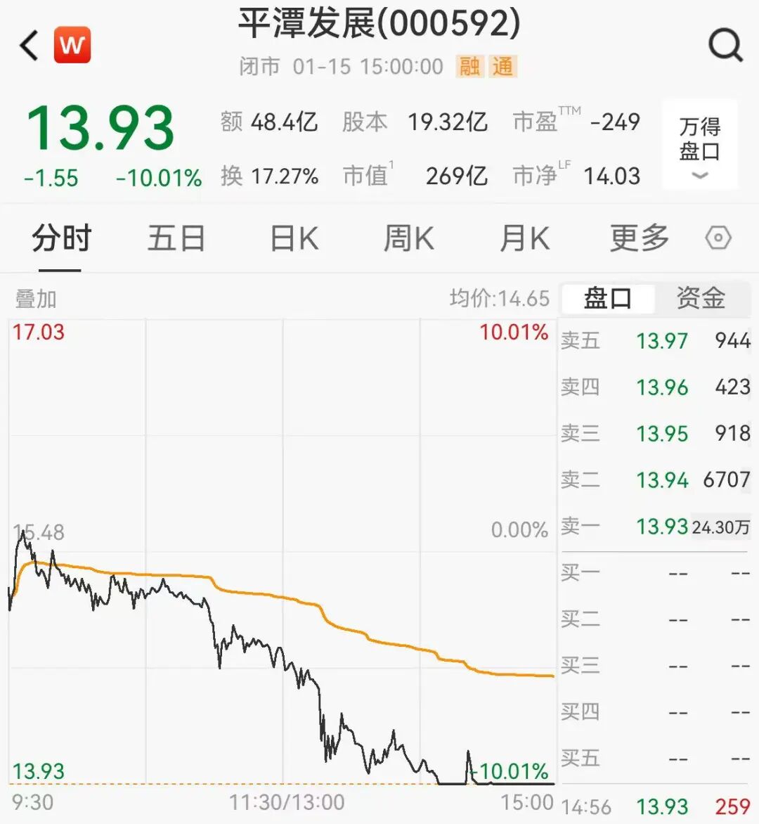 多只高位股持续走低,平潭发展跳水跌停,1月12日,平潭发展发布公告,预计2025年年度归母净利润将出现亏损。2025年前三季度,平潭发展实现收入10.30亿元,归母净利润3123万元。