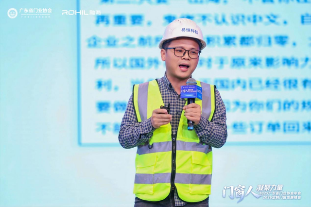 佛山市易恒科技有限公司总经理吴光恒带来“门窗出海三连问”主题分享,分析了门窗出海的重要性,必要性和可行性,并向与会来宾介绍了易恒发明的模块化展厅,以模块化设计,赋能门窗企业展位搭建,快速走进国际市场。