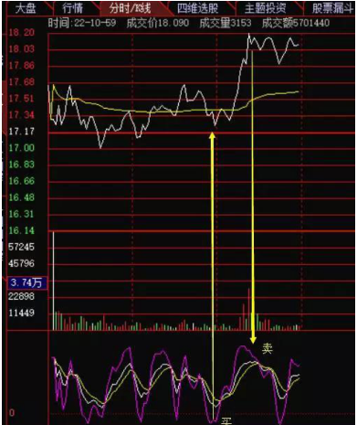 当分时图中已经出现了低背离形态的时候,我们就可以运用KDJ的J值拐头向上,来判断最佳买入时机,这样往往可以买在分时中相对非常低的点位,保证安全。