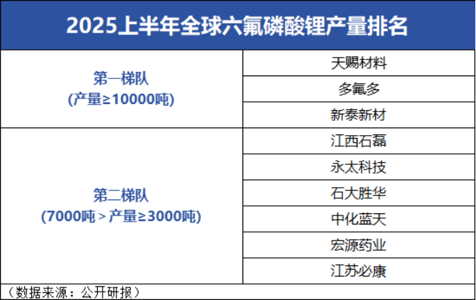 生产数据中可见端倪,2025上半年,全球电解液产量超10万吨的企业,仅有天赐材料、比亚迪和新宙邦;同期六氟磷酸锂市场,全球范围内仅有天赐材料、多氟多和新泰新材产量超1万吨。