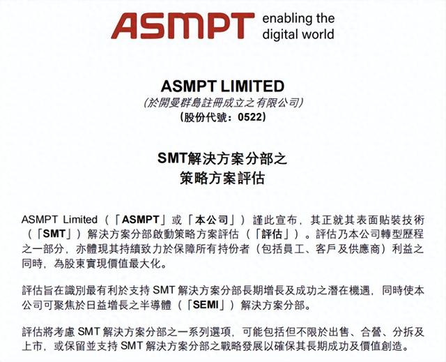 在全球半导体格局深度调整的当下,这一机遇的出现为市场各方提供了新的合作空间。对 ASMPT 而言,这是其战略聚焦的延续;对中国半导体产业而言,则意味着在全球核心资产竞争中,又多了一个可探索的方向。