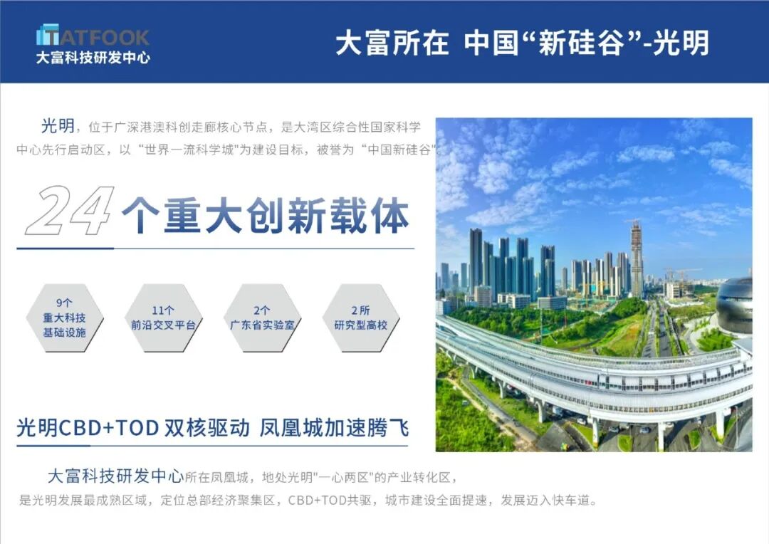 区位优势:大富科技研发中心位于光明科学城核心区域,是科技产业生态的重要节点。随着光明科学城的快速发展,该区域已成为深圳乃至全国科技创新的重要高地,吸引了大量高科技企业入驻,形成了良好的产业集聚效应。