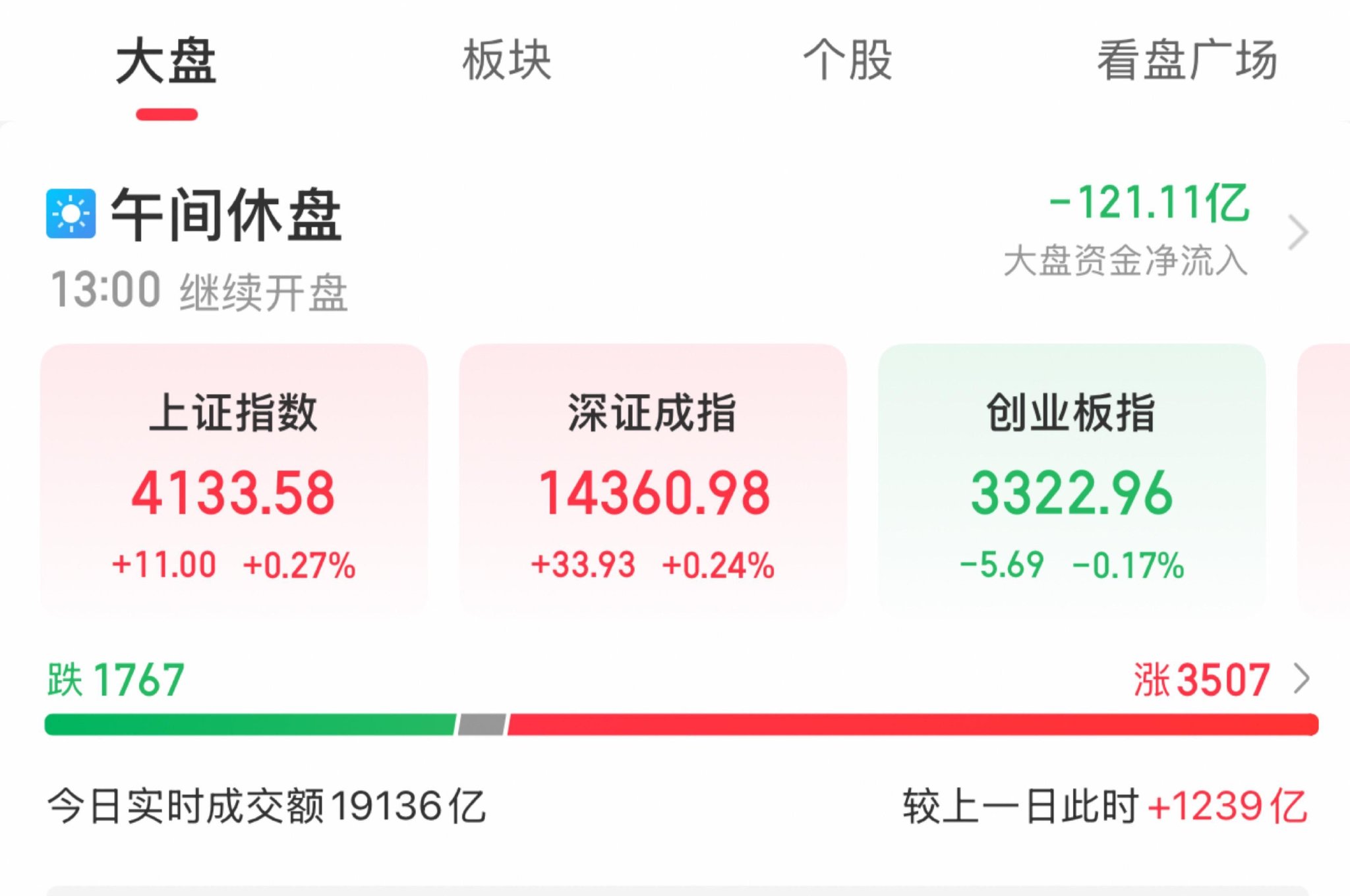 A股三大指数早盘涨跌不一,截至午盘,沪指涨0.27%,深成指涨0.24%,创业板指跌0.17%,北证50指数涨3.36%,沪深京三市半日成交额19136亿元,较上日放量1239亿元。全市场超3500只个股上涨。