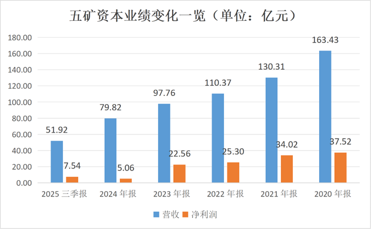 作为A股罕见的全牌照金融控股公司,五矿资本通过控股子公司为资本市场提供多元金融服务,业务板块涵盖融资租赁、信托、证券、期货等。自2021年至2024年,五矿资本的业绩已连降4年,其中2024年净利润创近10年来最大降幅。