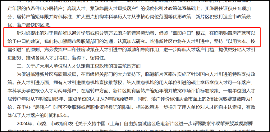 作为超大城市的上海,在落户政策上也展现出突破性探索。上海自贸区临港新片区管委会近日在回应市政协提案时明确表示,“将加强同市级职能部门的沟通,认真加以研究”。