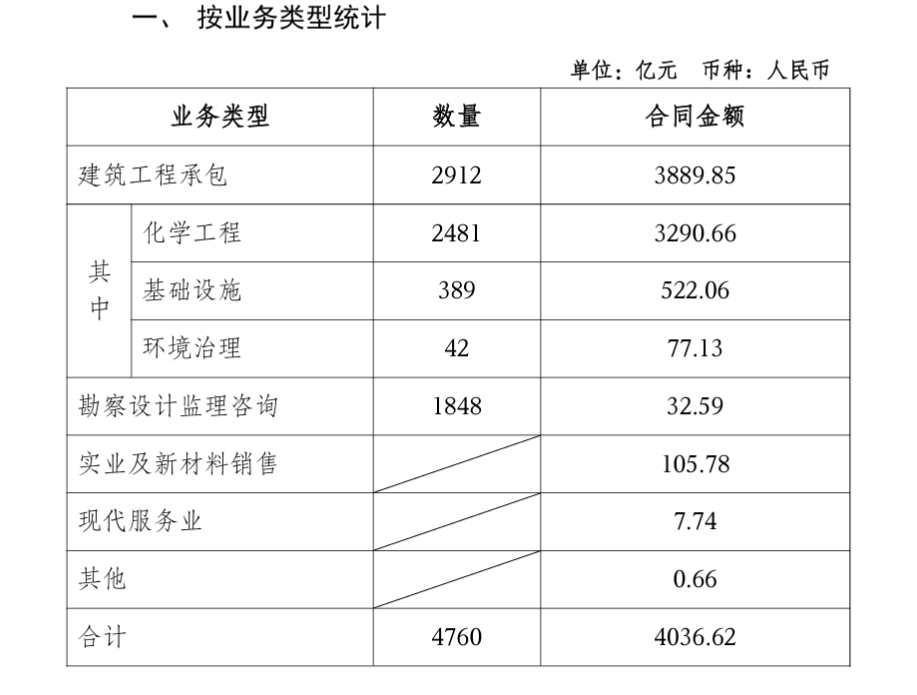 2026年1月26日,中国化学发布2025年1-12月的经营情况数据,1~12月总签约项目数量合计4760个,签约总额达4036.62亿元,其中境内2791.45亿元,境外1245.17亿元,实业及新材料销售105.78亿元。