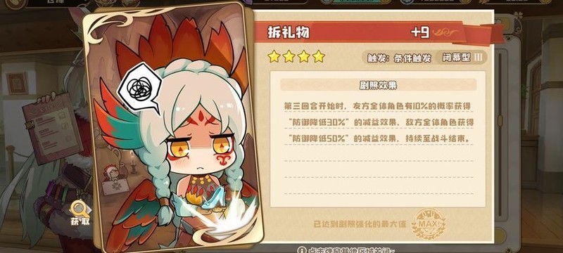 闭幕剧照包含拆礼物与乐极生悲3。拆礼物较为常见,刷图达标即可获得;乐极生悲3则能直接对敌方造成真实伤害,若自身抗性足够,可考虑携带,属稀有强力剧照之一。