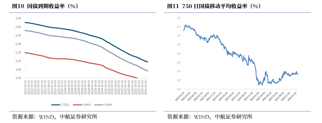 截至2026年1月23日,10年期债券到期收益率为1.8298%,环比-1.26BP。10年期国债750日移动平均值为1.9740%,环比-0.70BP。