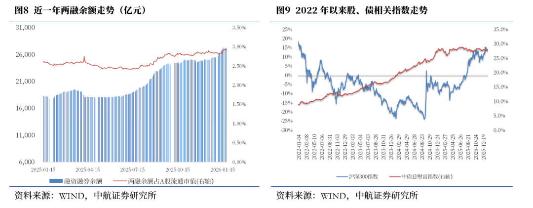 截至2026年1月23日,沪深300年内上涨1.57%,中债总财富(总值)指数年内上涨0.32%。本周股票市场下行,债券市场上行。