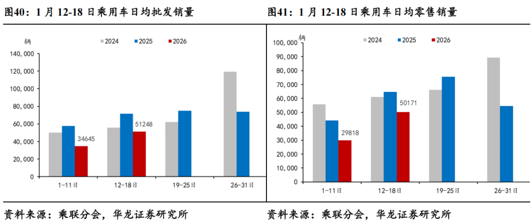 据乘联分会数据,1月12-18日,乘用车市场零售销量完成35.1万辆,同比-24%,较上月同期-31%;乘用车批发销量完成35.9万辆,同比-29%,较上月同期-30%。