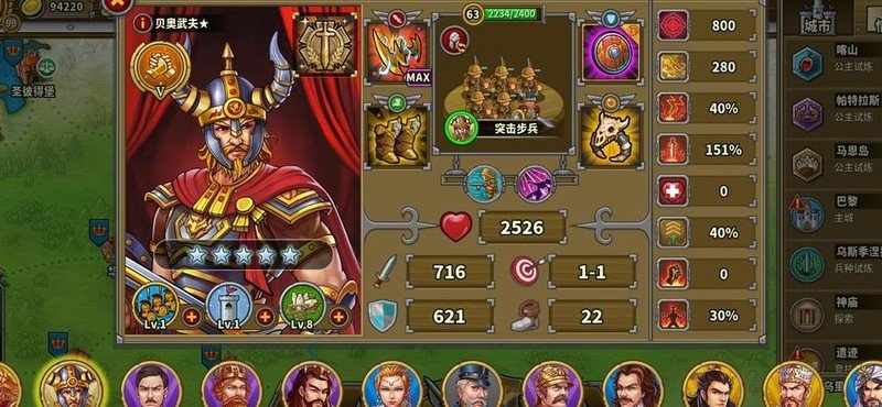 原本没打算挑战这关,毕竟许多武将尚未培养到位。先前打喀山只为获取索菲亚公主,彼得大帝的专属武器对我而言并非必需。由于渠道服未更新,便回头提升贝奥武夫等级,顺势通关了这一关卡。